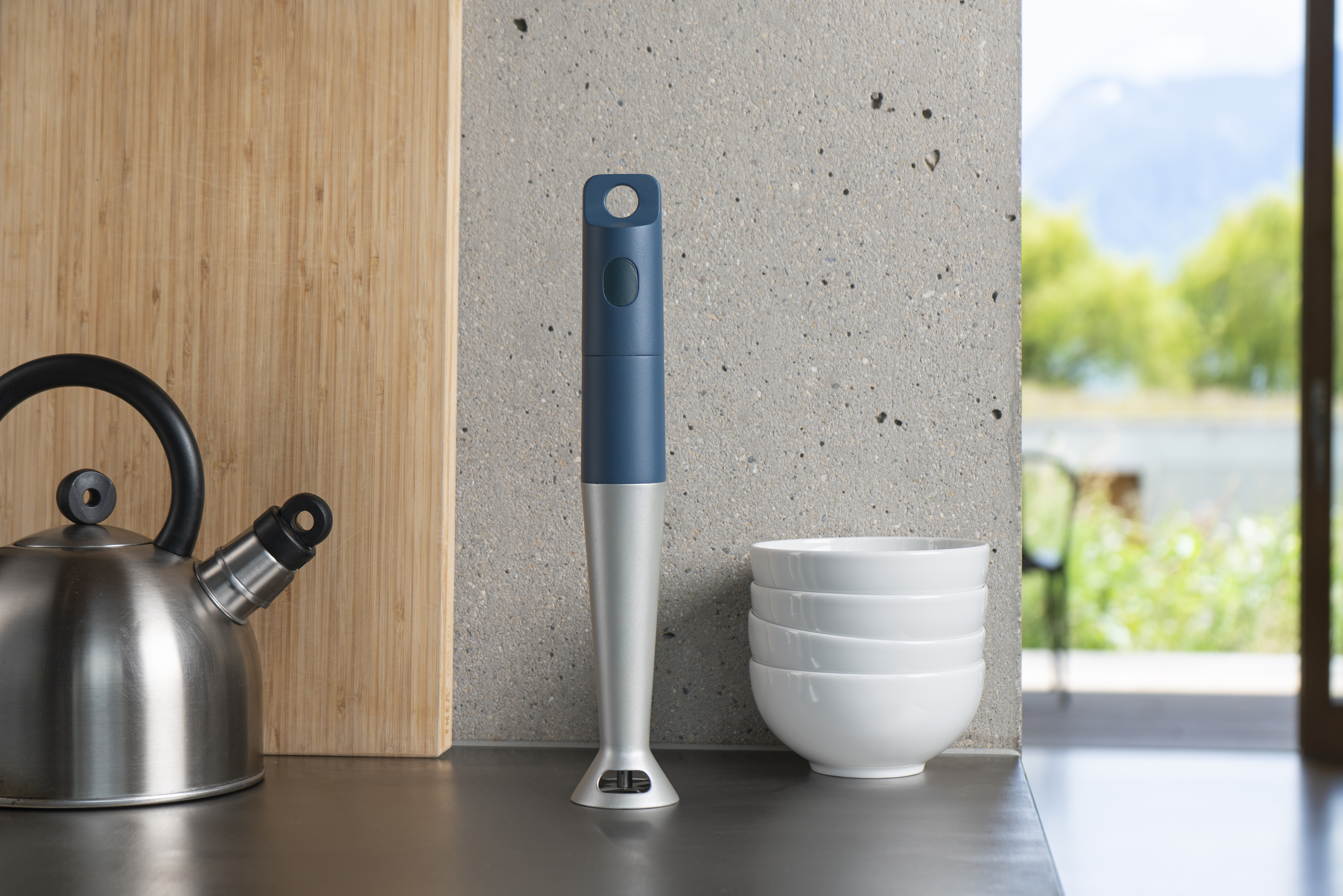 Unlike other food processors, Blend has no cables, no charging stations and no messy attachments. As its name suggests it is an essential tool for everyday kitchen tasks without any unneccssary extras. The hole at the top and no cable means it can be stored with all your other kitchen utensils on hooks or in a drawer. The 3 part cordless design makes it easy to clean, charge and incredibly convenient to use anywhere in the kitchen.